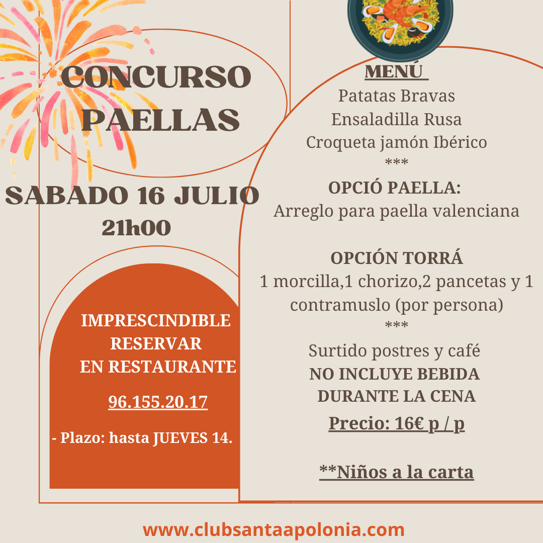 CONCURSO PAELLAS: SÁBADO 16 JULIO