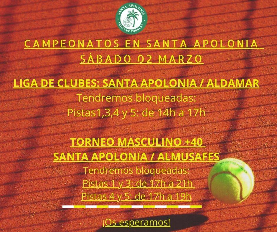 SÁBADO 2 MARZO: +40 MASCULINO Y LIGA DE CLUBES
