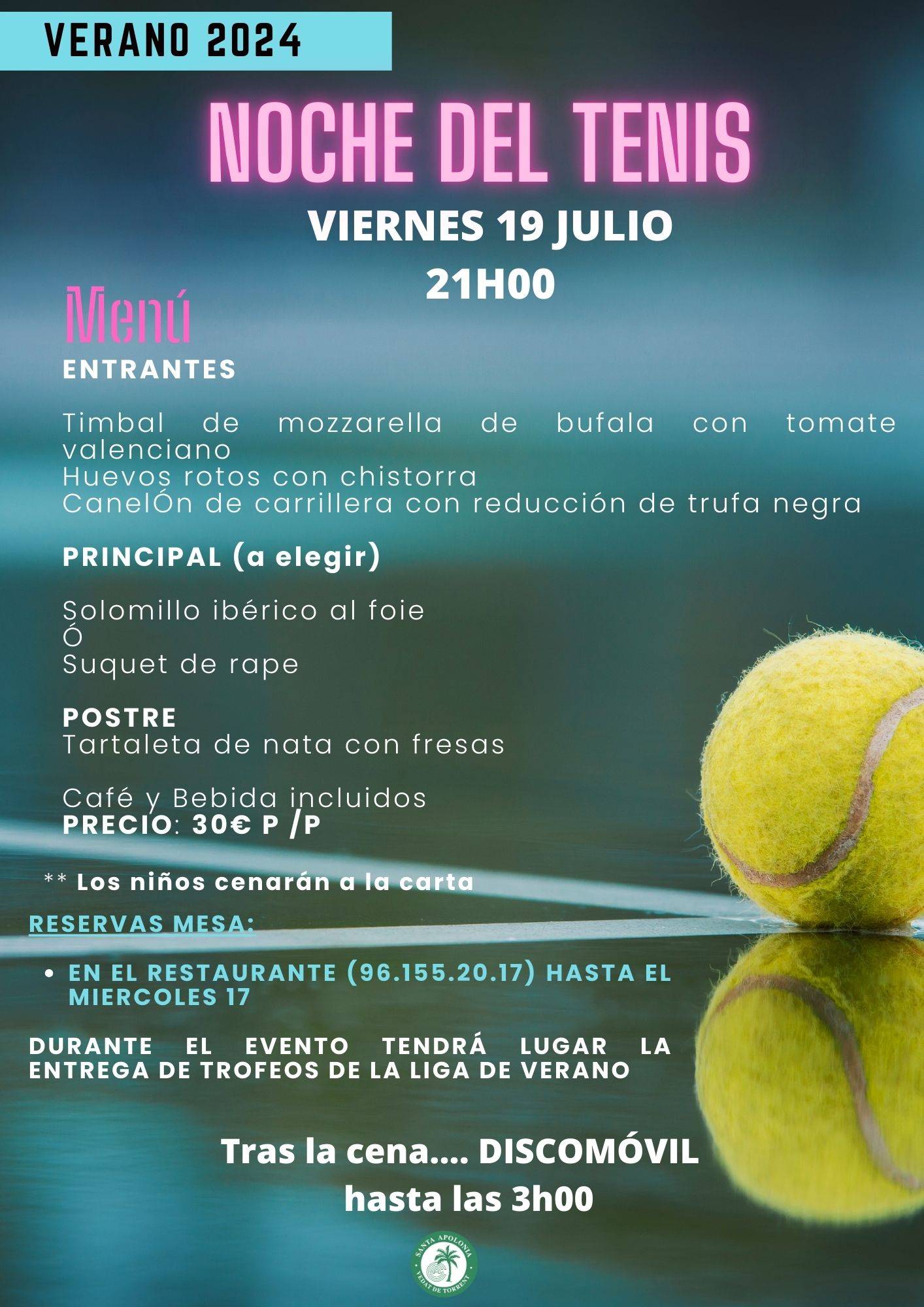 PARA LAS RESERVAS DE MESA DE LA NOCHE DEL TENIS