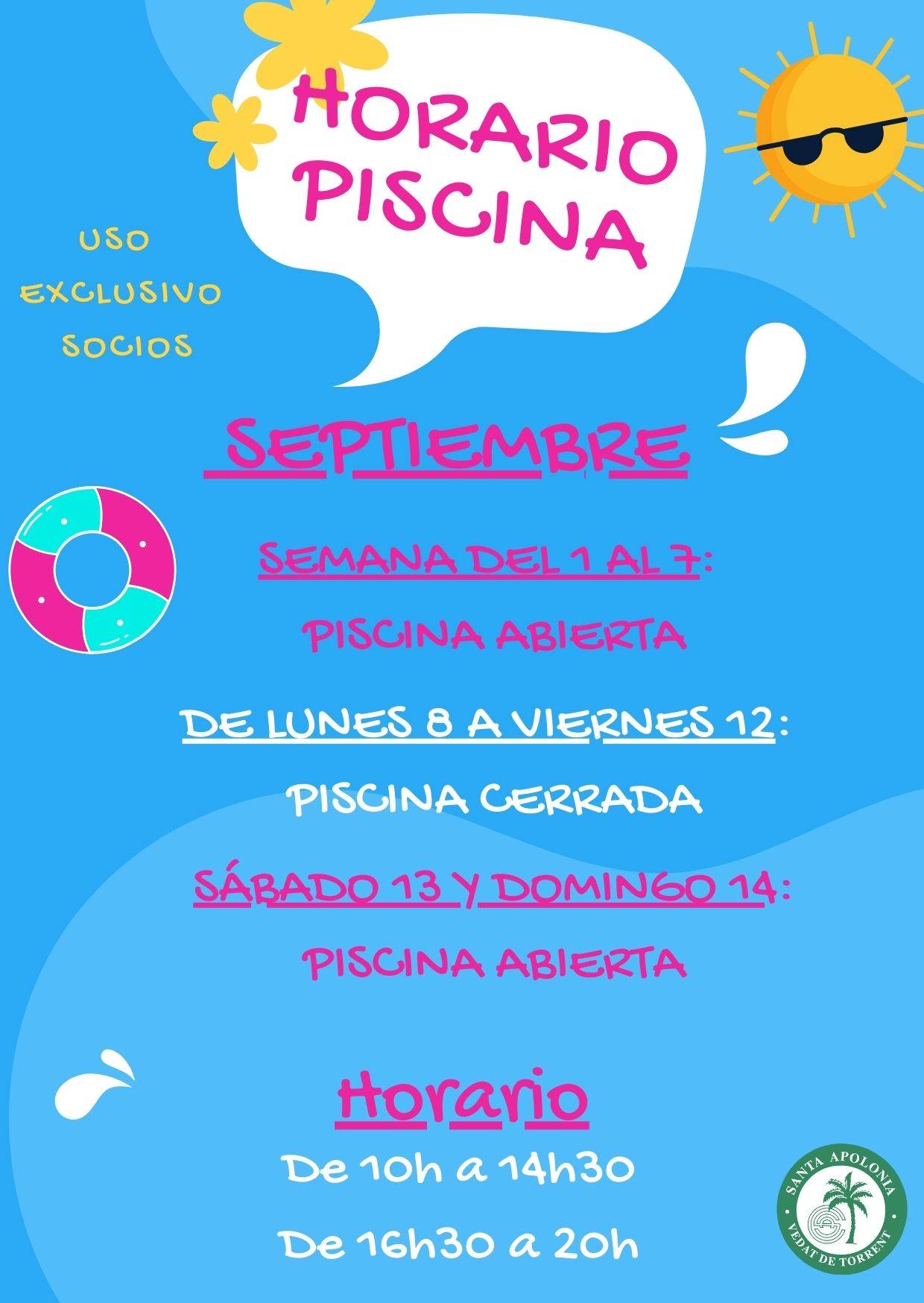 PISCINA SEPTIEMBRE: HORARIO Y FECHAS